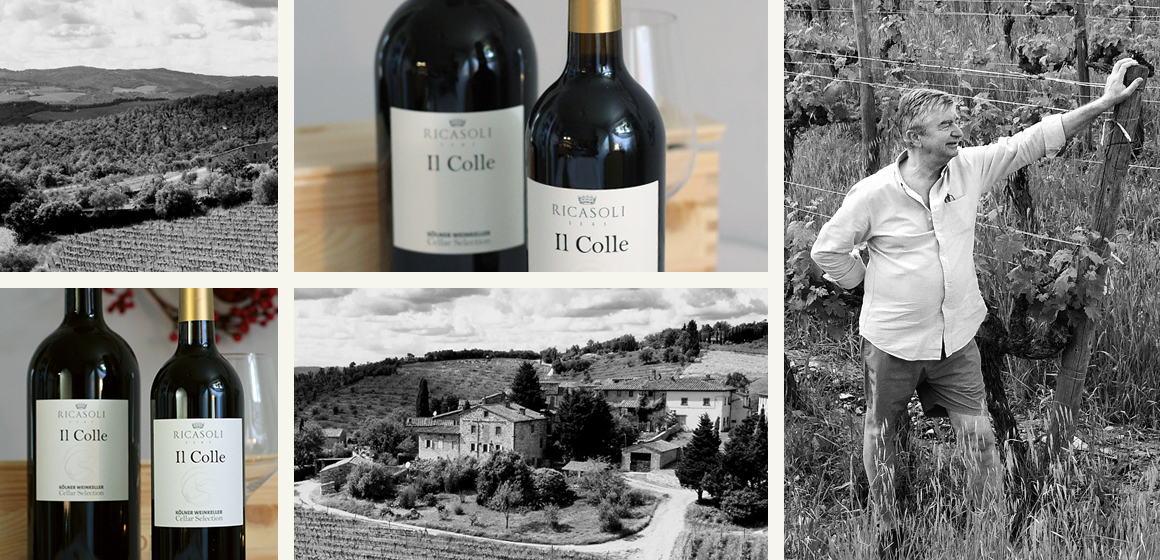 Die Basis für die exorbitanten Weine wird mit den Aufgaben in den Weingärten geschaffen. Francesco Ricasoli beschreibt die akribische Arbeit bei jedem seiner Weine so: „Jeder Wein, den wir produzieren, hat eine einzigartige Persönlichkeit, trotz der gemeinsamen Herkunft aus demselben Gebiet. Das verdanken wir den vielfältigen Böden, Höhenlagen und Mikroklimata, die es uns ermöglichen, die wahre Natur des Brolio-Terroirs hervorzuheben.“ Diese Philosophie gilt selbstverständlich auch für den eigens für die Cellar Selection produzierten Wein mit dem Namen „Il Colle (der Hügel)“. Dieser Cabernet Sauvignon ist elegant und vielschichtig. Die Geschichte des Rotweins reicht weit zurück: Auf der Suche nach dem gewissen Etwas als Beitrag zur hauseigenen KWK-Kollektion stieß Francesco Ricasoli in einem „charmanten Dorf in der Nähe Brolios“ auf einen „sehr kleinen Weinberg“ auf seinem privaten Besitz. Dessen alte Reben, normalerweise nicht auf der Ricasoli-Weinkarte zu finden, wurden sorgfältig ausgewählt und für uns vinifiziert. Bei einer 18-monatigen Reifung im Tonneau-Fass entstand ein wahrer Genuss für Kenner. Kein klassischer Sangiovese, aber ein Wein mit frischer Zugänglichkeit, kraftvoll, mit feinkörnigen Tanninen und bemerkenswerter Tiefe und Länge. Ein Wein, der mit Haltung und eigener Handschrift überzeugt.