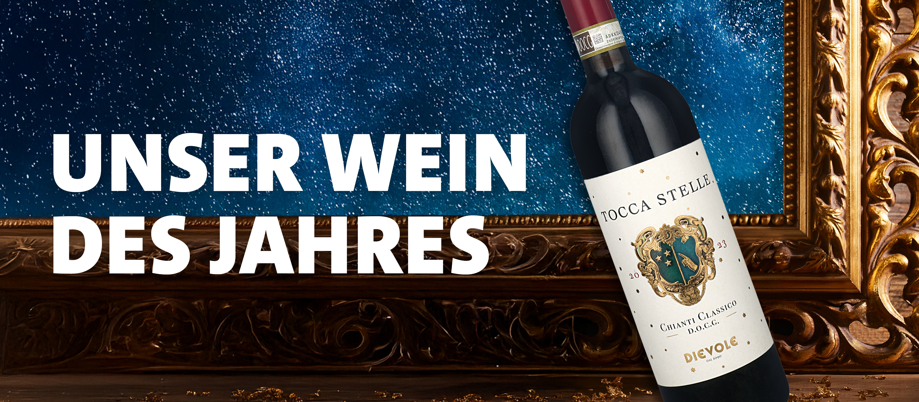 Glauben Sie an Liebe auf den ersten Schluck? Wir auch. Unzählige Weine haben unsere Sommeliers verkostet, um daraus den „Wein des Jahres 2026“ auszuwählen. And the winner is: „Tocca Stelle“. Es ist ein Chianti Classico DOCG mit Wow-Effekt zum budgetschonenden Preis.