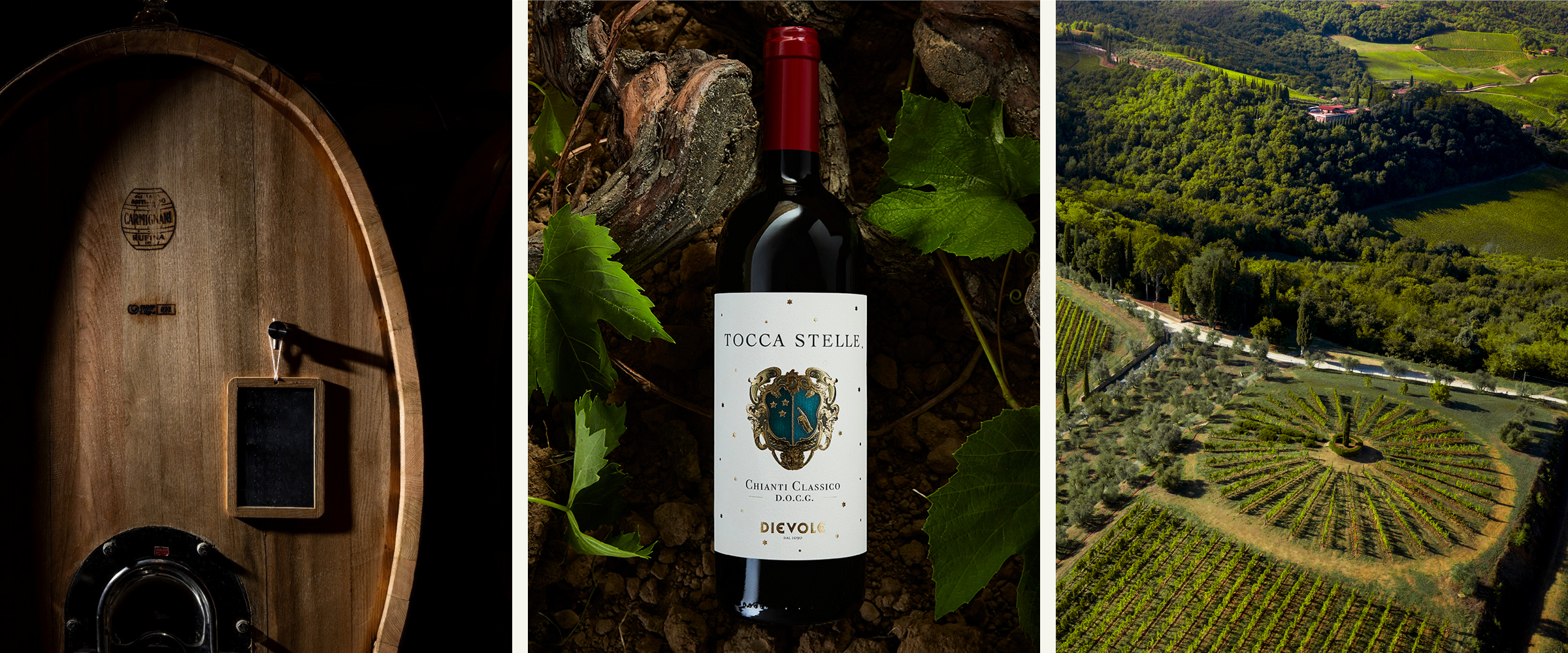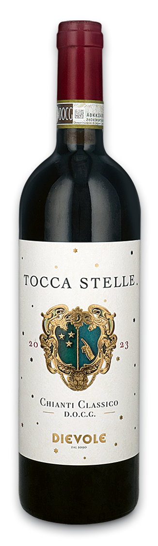 „Tocca Stelle“ ist ein Rotwein mit Tiefgang. Er ist ein rubinrotes Versprechen, das nach einem Masterplan und mit Geduld gekeltet wurde. Das Herzstück als Fundament für ein besonderes Geschmackserlebnis bildet Sangiovese. Die Rebstöcke stehen in einem der ältesten Weinberge des Weinguts Dievole, die auf etwa 350 Metern liegen. Terroir und Mikroklima sind wichtige Faktoren als Basis für die Exzellenz der Trauben, das Können der Divole-Winzer eine weitere, wichtige Zutat. Das Ergebnis ist ein klassischer, vielseitiger und aromatischer Rotwein.